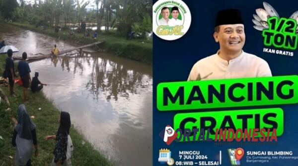 BANJARNEGAR – Mancing Gratis digelar Relawan Gus AL (Ahmad Luthfi) di Sungaj Blimbing Desa Gumiwang, Kecamatan Purwomego, Kabupaten Banjarnegara, Minggu (7/7/2024), dimulai pukul 08.00 hingga selesai.