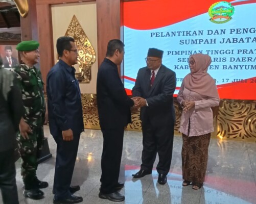 BANYUMAS – Agus Nur Hadie, S.Sos, M.Si resmi menjabat Sekretaris Daerah (Sekda) Kabupaten Banyumas. Acara Pelantikan dan pengambilan sumpah jabatan di lakukan di Pendopo Si Panji, Rabu (17/07/2024).