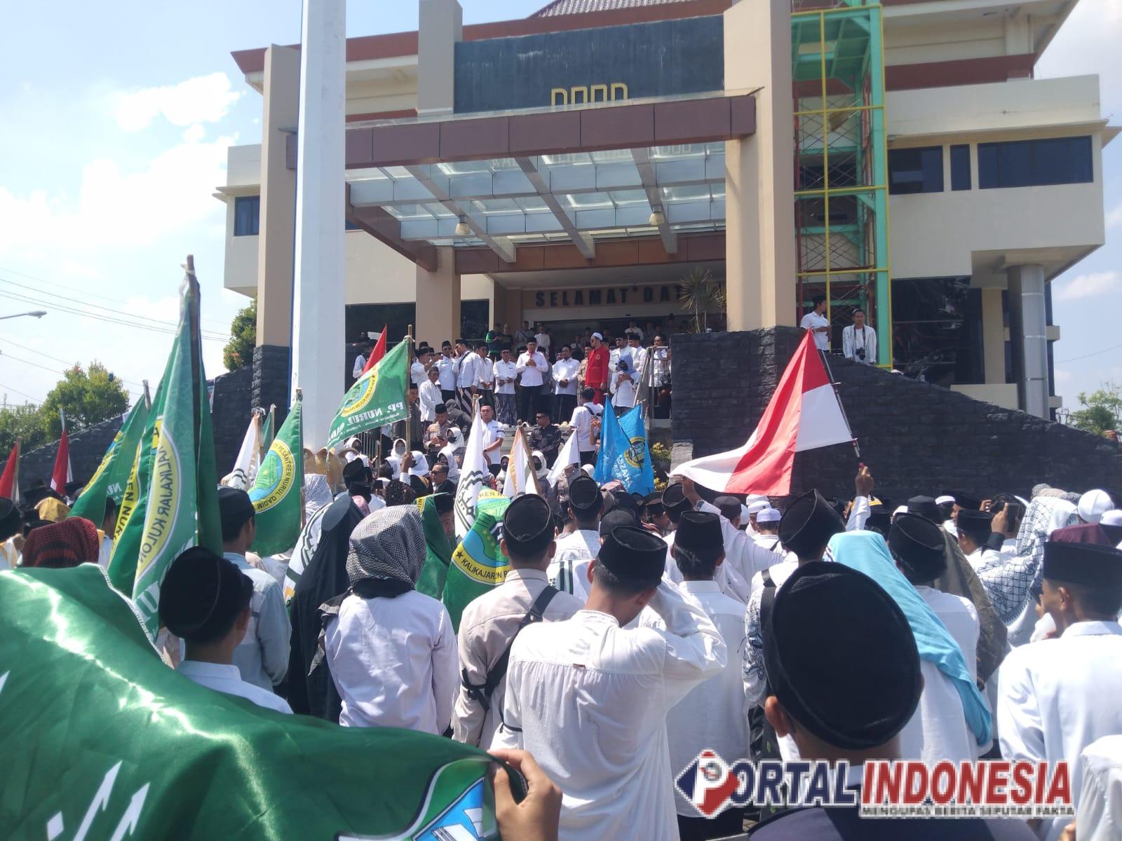 PROBOLINGGO — Ribuan santri dan alumni dari berbagai pondok pesantren se-Probolinggo Raya memadati kawasan depan Kantor DPRD Kabupaten Probolinggo pada Minggu (19/10/2025). Mereka menggelar aksi damai sebagai bentuk protes terhadap tayangan program Xpose Uncensored Trans7, yang dinilai mencederai martabat kiai dan dunia pesantren.