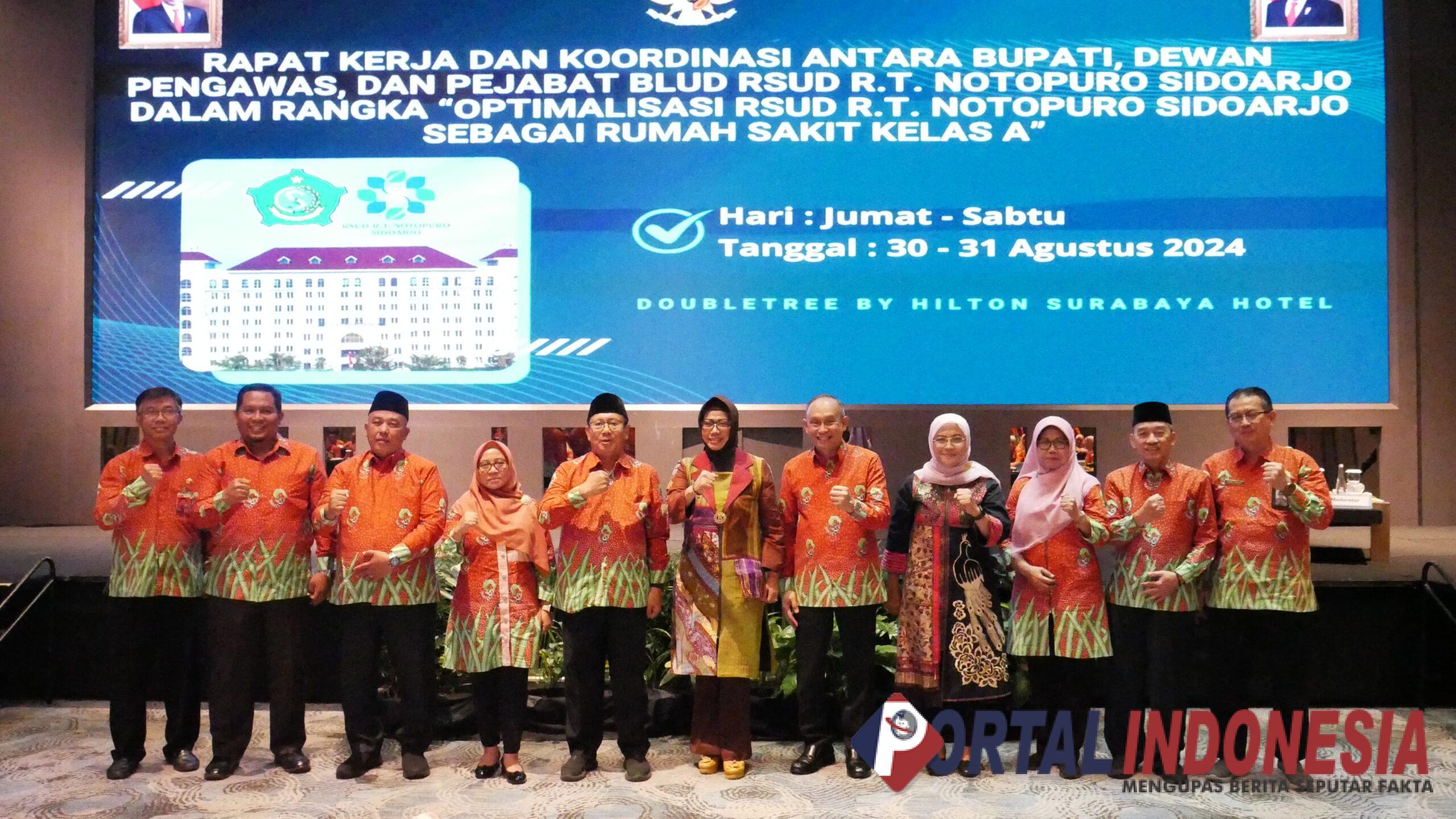 Pada Rapat Koordinasi dan Rapat Kerja bertema “Optimalisasi RSUD R.T. Notopuro Sidoarjo Sebagai Rumah Sakit Kelas A” yang digelar di Hotel Double Three Surabaya, Sabtu (31/8/2024), Fenny menyampaikan pesan Plt. Bupati Sidoarjo bahwa pemerintah daerah mendukung penuh inovasi yang dilakukan RSUD, yang baru saja naik status menjadi tipe A.