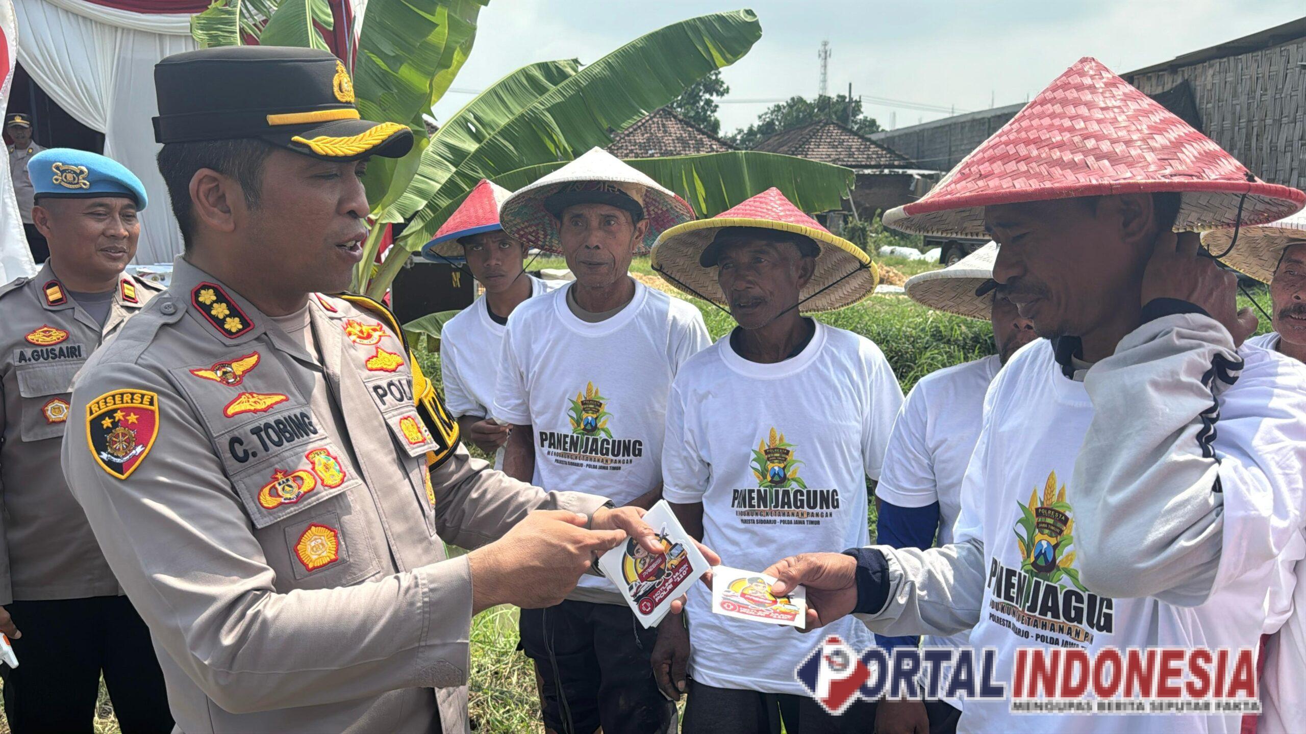 Kegiatan ini turut dihadiri pejabat utama Polresta Sidoarjo dan warga setempat, bersamaan dengan acara panen jagung yang berlangsung di desa tersebut.