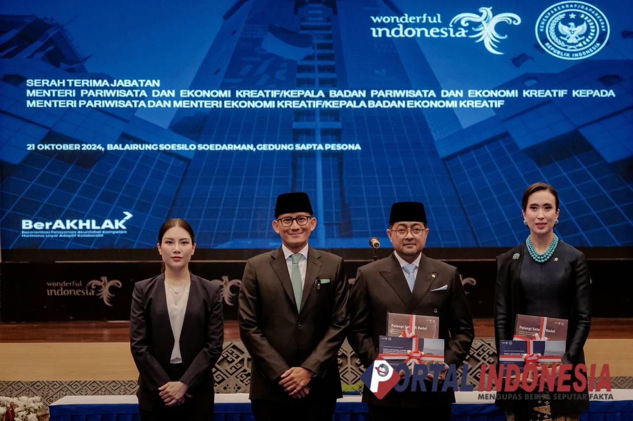 JAKARTA – Setelah empat tahun memimpin sejak 23 Desember 2020, Sandiaga Salahuddin Uno resmi menyerahkan tongkat estafet kepemimpinan Kementerian Pariwisata dan Ekonomi Kreatif (Kemenparekraf) Republik Indonesia. Jabatan tersebut kini diemban oleh Menteri Pariwisata, Widiyanti Putri, dan Menteri Ekonomi Kreatif, Teuku Riefky Hasya.
