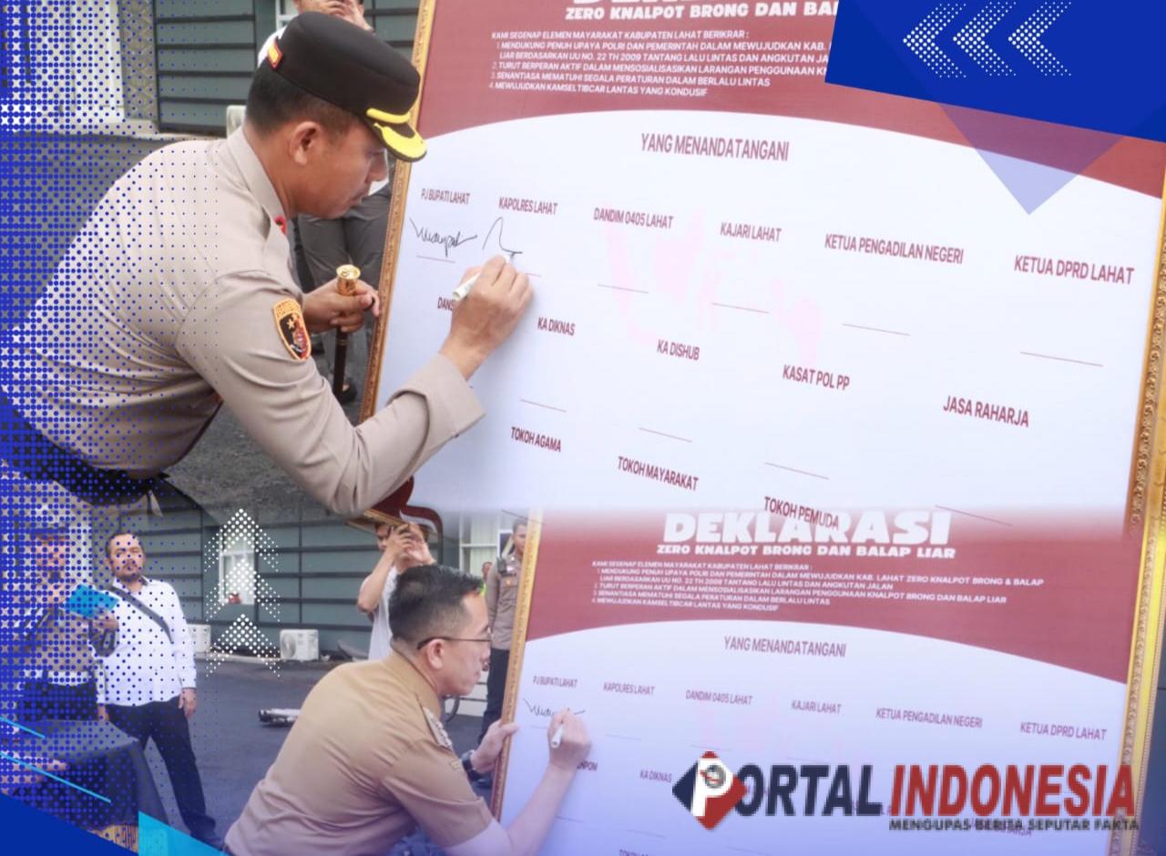 LAHAT – Kapolres Lahat AKBP God Parlasro S. Sinaga, S.H., S.I.K., M.H., bersama Forkopimda Lahat, Ketua DPRD Kabupaten Lahat, serta tokoh masyarakat, melaksanakan Deklarasi dan Penandatanganan Pakta Integritas Zero Knalpot Brong dan Balap Liar pada Senin (10/2/2025).