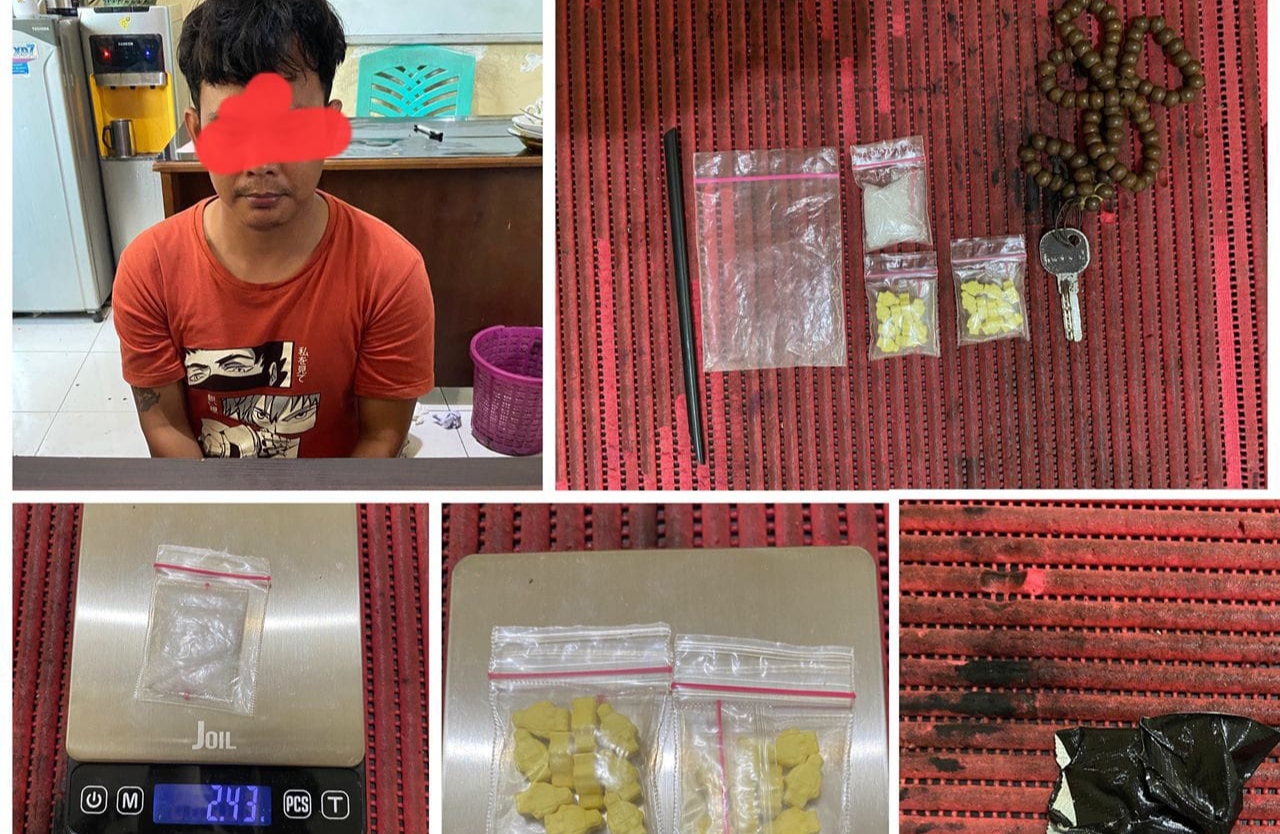 2. Satu paket serbuk kristal putih diduga sabu seberat bruto 2,43 gram.