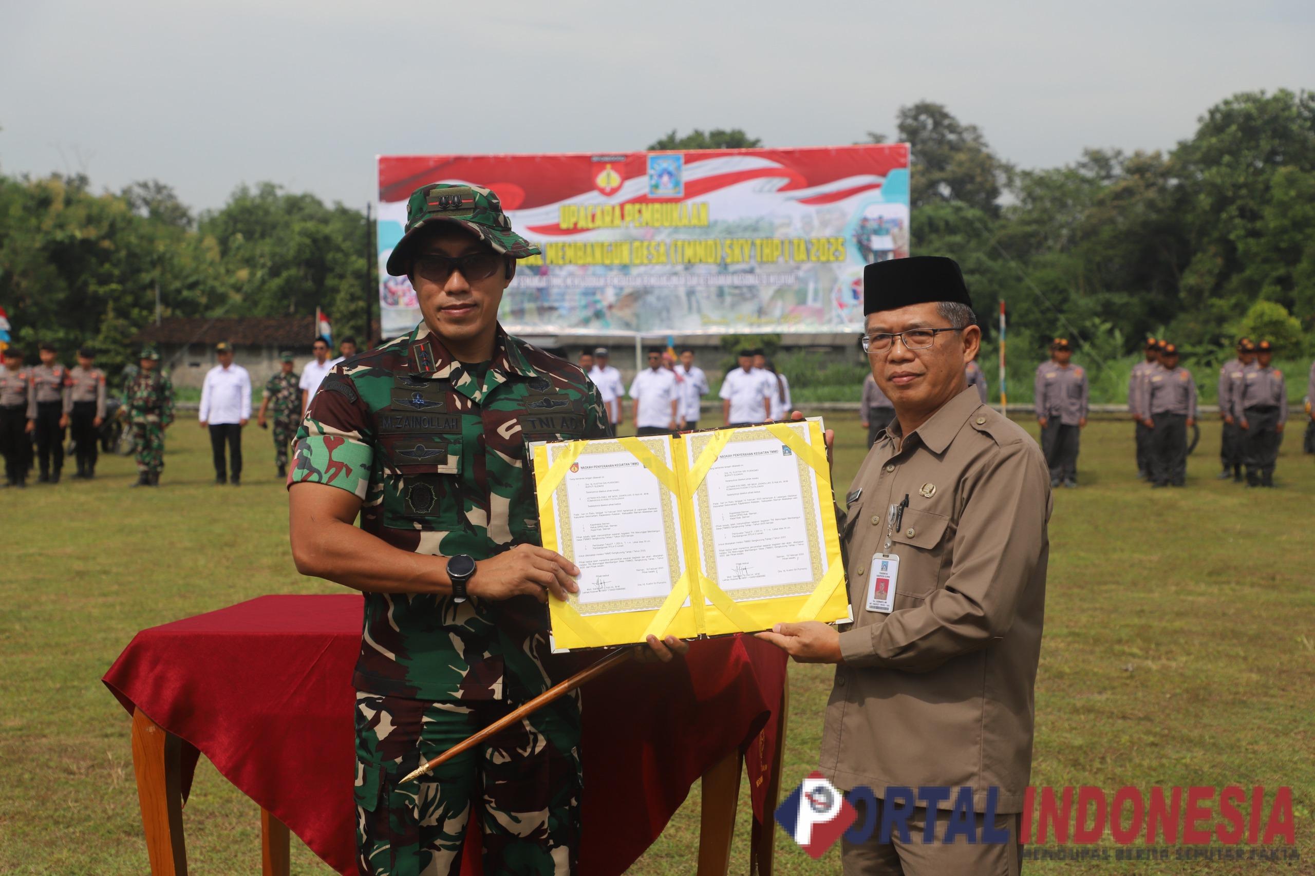 Dandim 0732/Sleman, Letkol Inf Mohammad Zainollah terima berita acara program TMMD Sengkuyung Tahap I dari Sekda Sleman Susmiarto (Portal Indonesia/Brd)