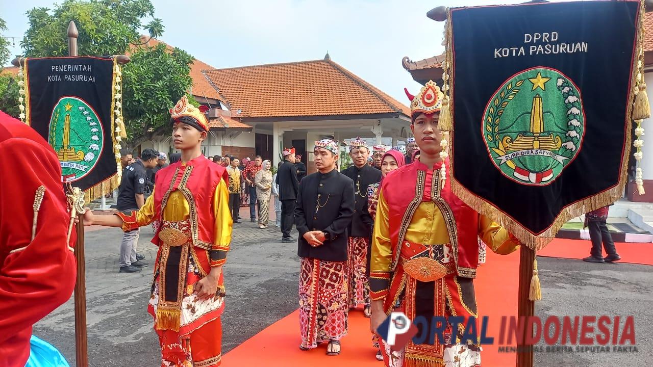 Bertema “Bergerak dengan Hati, membangun Kota Pasuruan yang Berkelanjutan”, prosesi Kirab Pataka itu berlangsung dari Pendopo Kota Pasuruan menuju ke Gedung Kesenian Darmoyudo, dan acaranya pun berlangsung khidmat serta penuh makna.