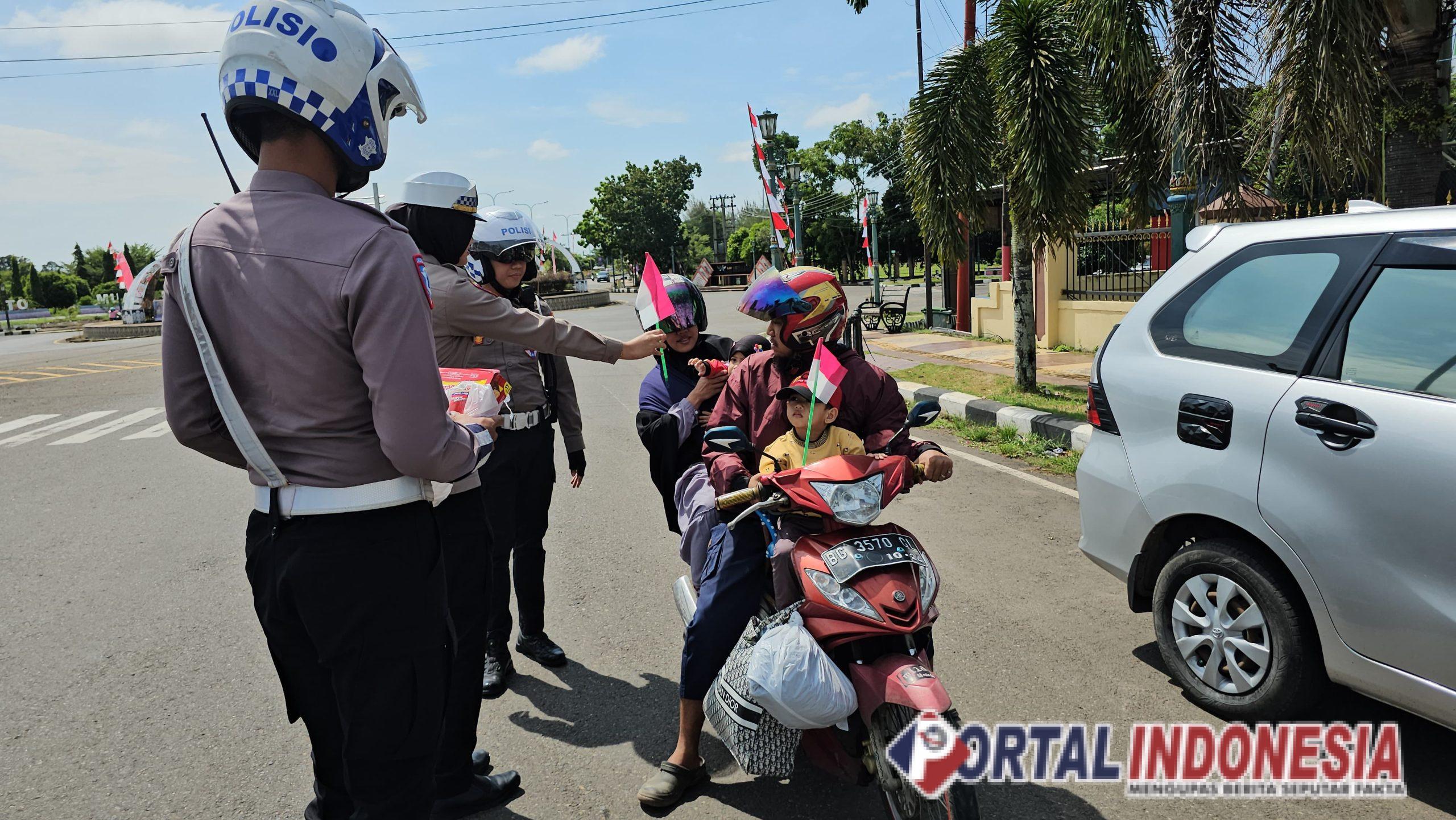 Semarak HUT RI ke-80, Polres Musi Rawas Bagikan Bendera Merah Putih dan Kampanyekan Cinta Tanah Air
