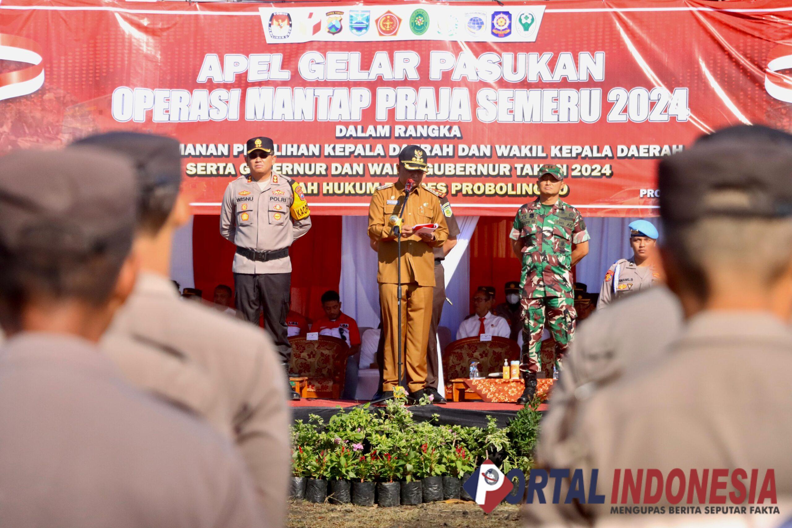 Apel Gelar Pasukan OMP Semeru 2024, dihadiri Forkopimda, TNI-Polri, Kepala OPD se-Kabupaten Probolinggo, KPU, Bawaslu, pimpinan partai politik, tokoh agama, tokoh masyarakat, dan mahasiswa.
