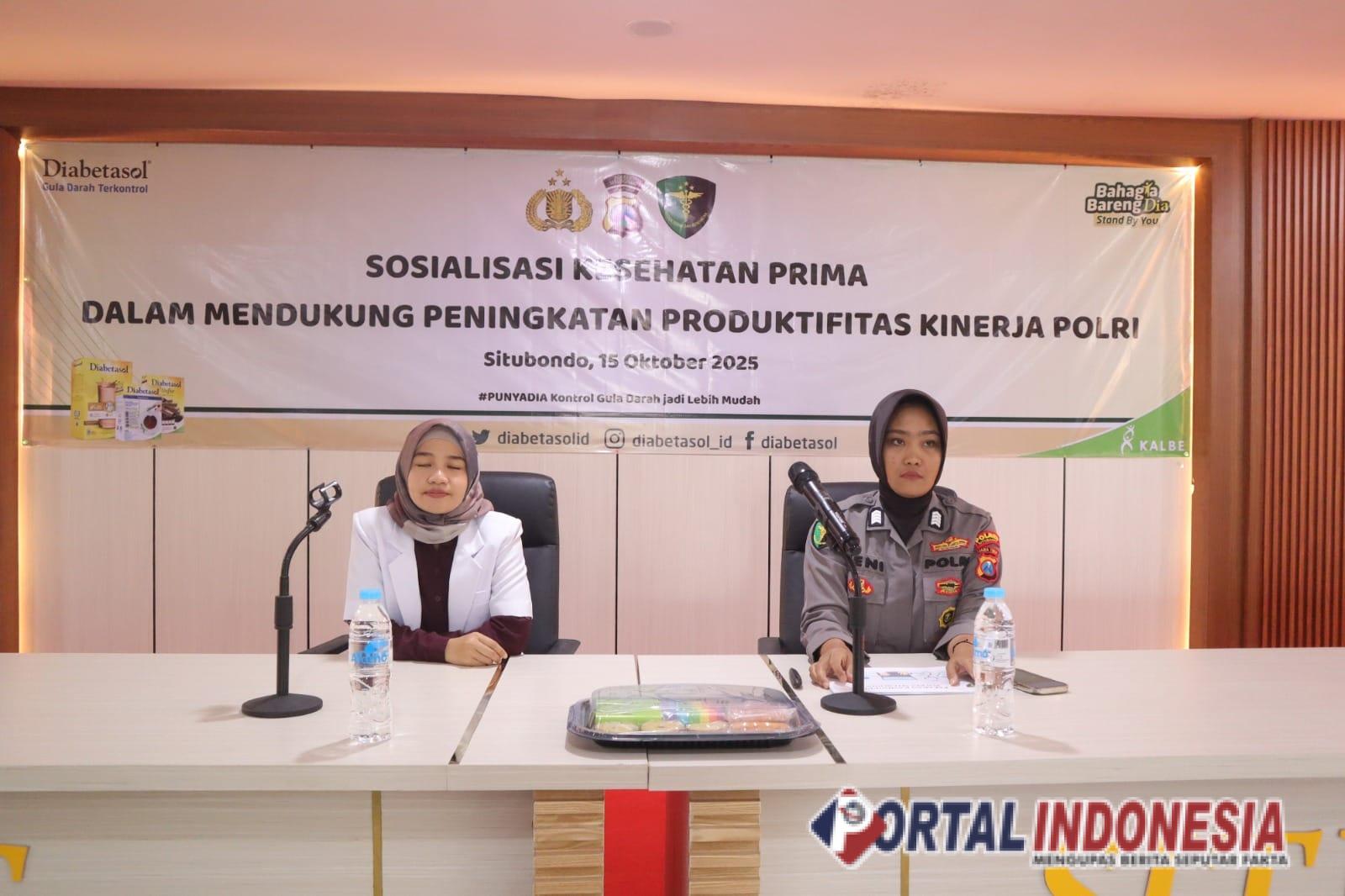 SITUBONDO – Dalam upaya menjaga kebugaran dan produktivitas kerja personel, Seksi Kedokteran dan Kesehatan (Sidokkes) Polres Situbondo Polda Jawa Timur menyelenggarakan Sosialisasi Kesehatan Prima. Kegiatan ini merupakan bagian dari program peningkatan kinerja Polri Tahun Anggaran 2025 dan digelar di Gedung Tantya Sudirajati, Mapolres Situbondo, pada Rabu (15/10/2025) pagi.