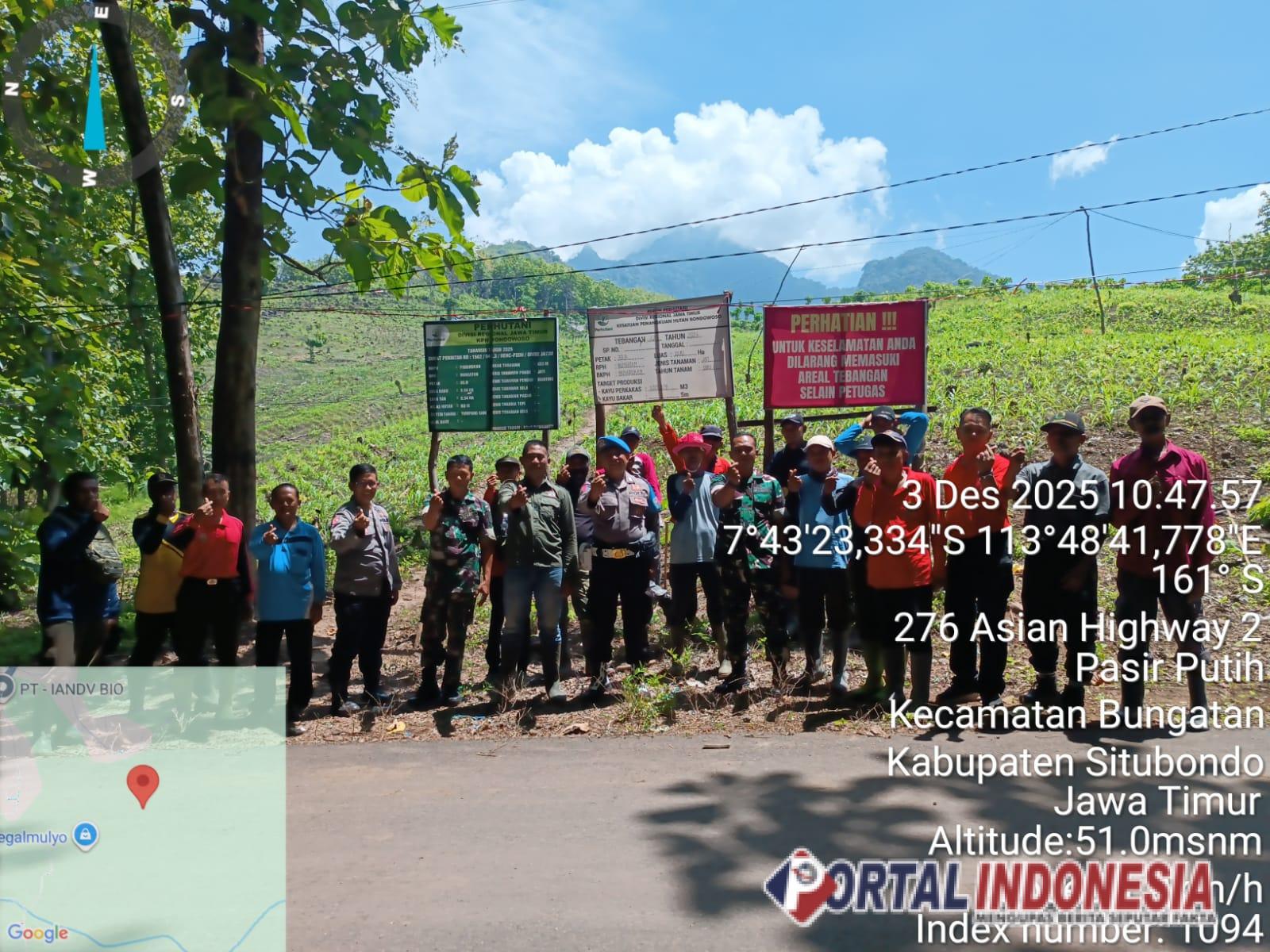 SITUBONDO — Komitmen menjaga kelestarian lingkungan kembali ditegaskan melalui aksi penanaman pohon di Petak 33B Resort Pemangkuan Hutan (RPH) Bungatan, BKPH Panarukan, Selasa (2/12/2025). Kegiatan yang melibatkan Muspika Polsek Bungatan, Koramil Bungatan, serta masyarakat Dusun Nyamplong ini menjadi bukti nyata sinergi lintas elemen dalam merawat alam.