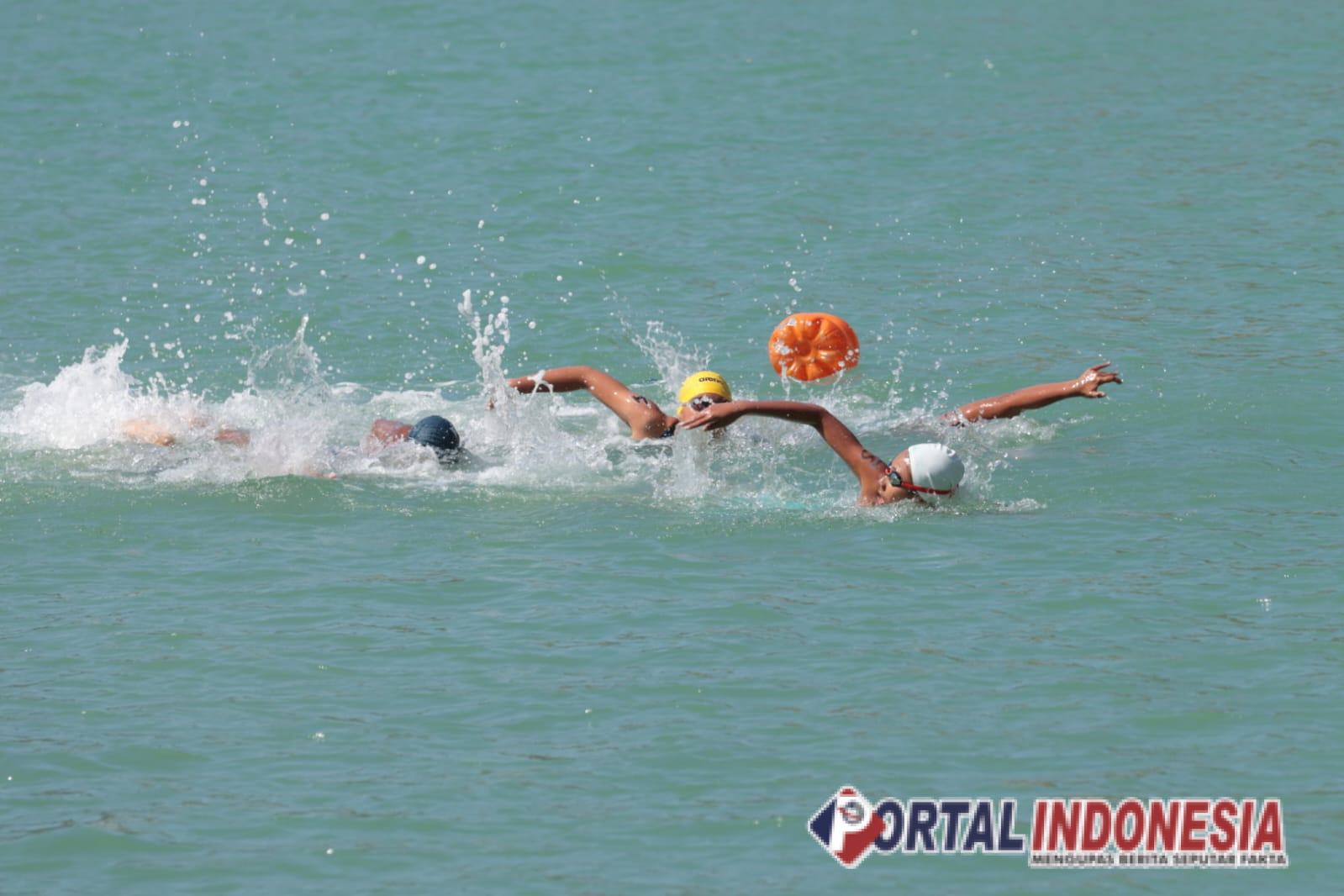 Dalam pertarungan yang berlangsung di Pantai Gesing, Gunungkidul, Jumat (12/9) pagi, Sleman berhasil sapu bersih dua medali emas yang diperebutkan pada renang perairan terbuka.