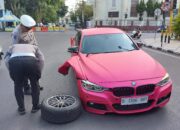 Roda Mobil Terlepas, Personel Polresta Malang Kota Tanggap Beri Pertolongan
