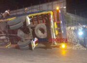 Truk Tebu Terguling di Lampu Merah Suboh Situbondo, Satu Orang Luka Berat