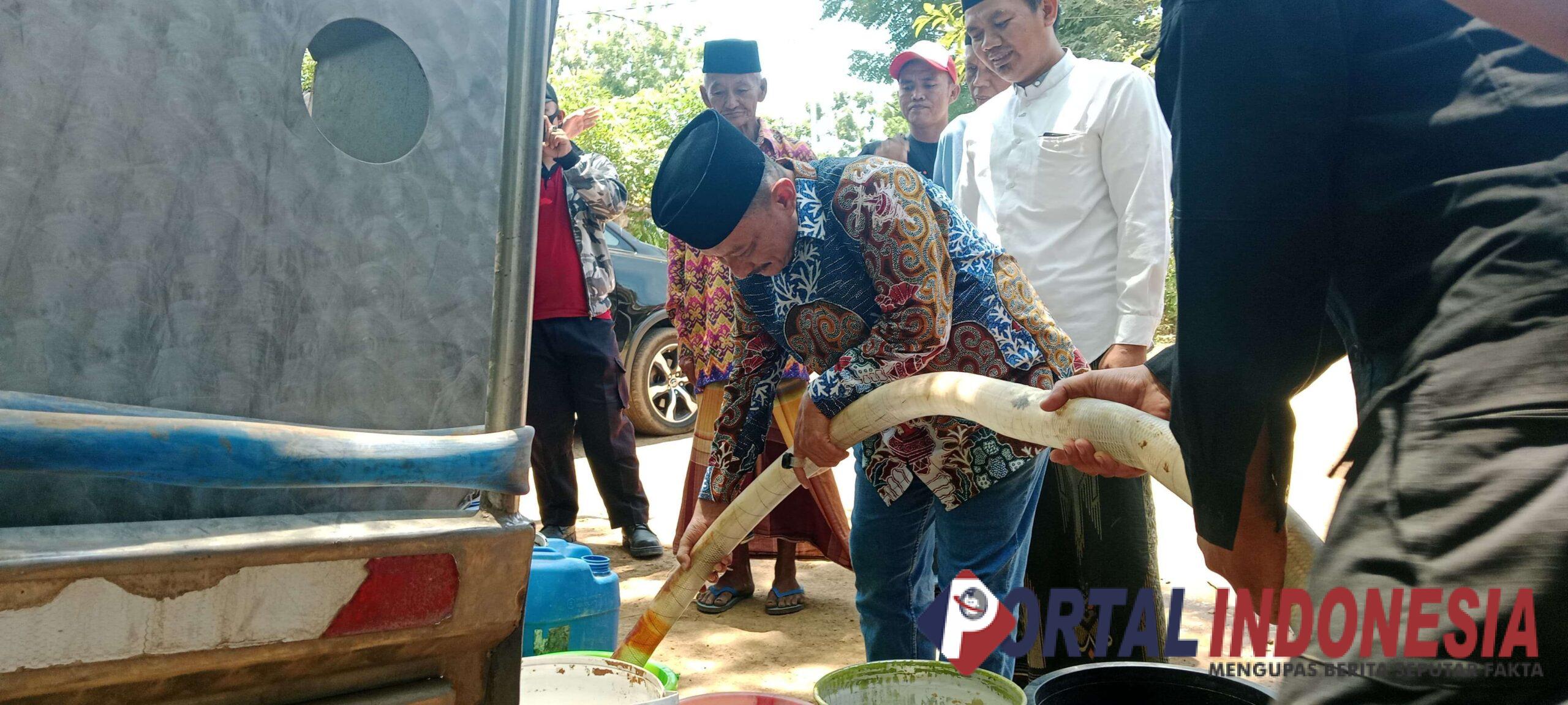 Bupati Situbondo, Karna Suswandi saat mendistribusikan air bersih kepada warga di Dusun Bendera, Desa Sumberejo, Kecamatan Banyuputih