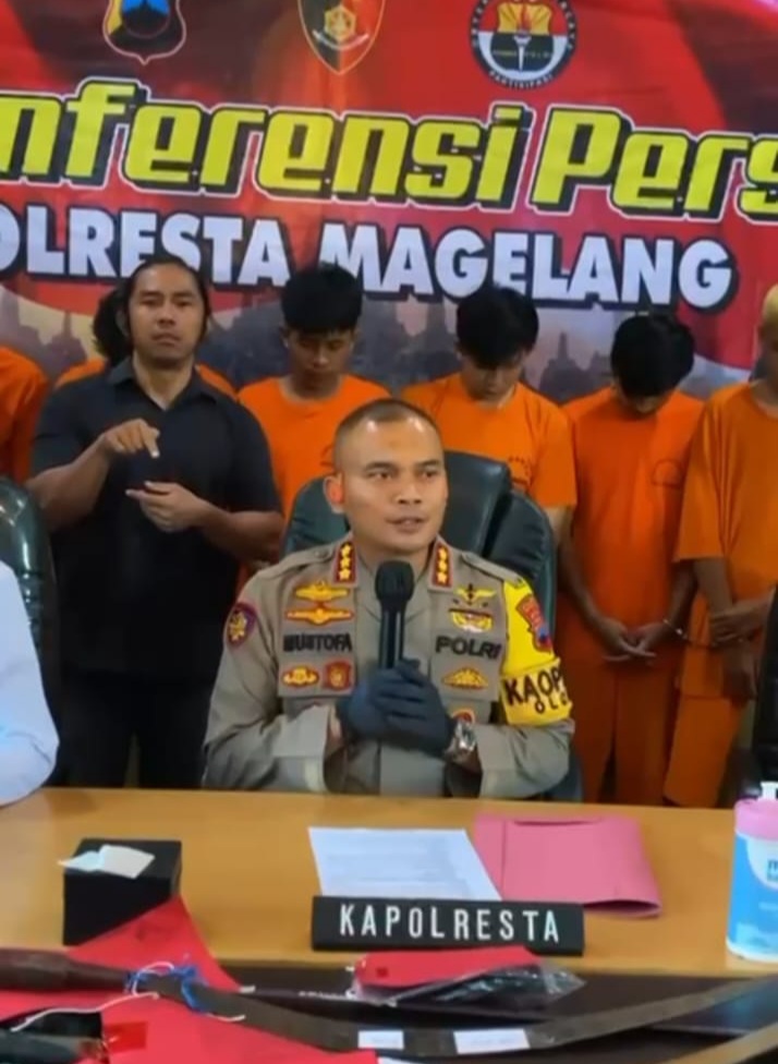 Kapolresta Magelang Kombes Pol Mustofa menjelaskan, kesembilan pelaku berhasil diamankan, setelah anggotanya kembali mengamankan dua remaja yang membawa senjata tajam dilokasi. (Chris)