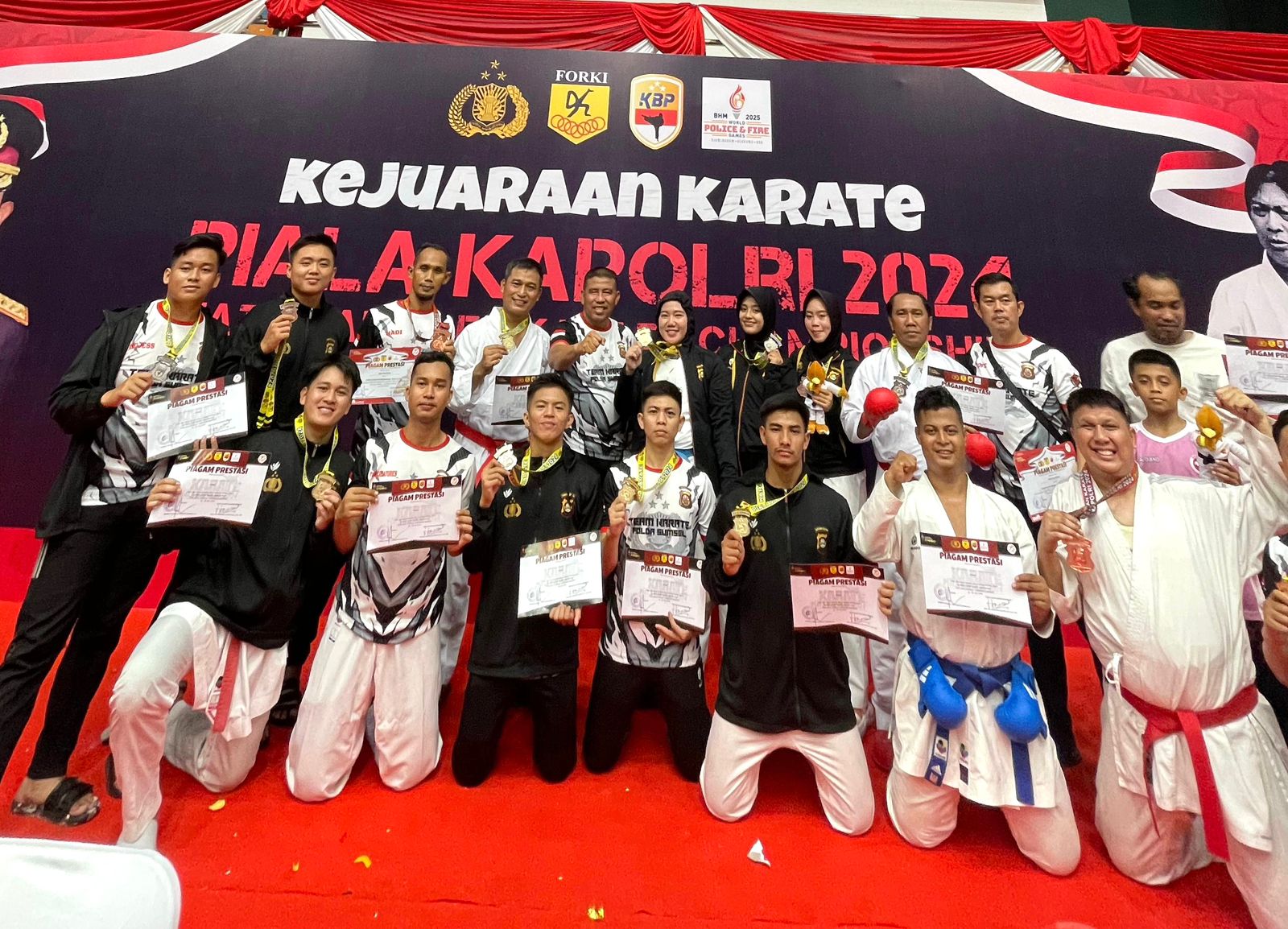 Tercatat 12 atlet peraih medali emas diantaranya Bripka Ziko Bungsu Putra, asal Polres Lahat yang turun dikelas kumite -70 usia 40th, Bripda Tara Maharani asal Dit Samapta Polda Sumsel yang turun di pertandingan Kata perorangan usia 18+ Putri, Bripda Alfatsyah Azom M dari Polrestabes Palembang yang turun di pertandingan Kumite Perorangan Usia 18+ Putra -65kg, Bripda M Rizky Alfaraby dari Polres Muara Enim yang turun dikelas Kumite Perorangan Usia 18+ Putra -70kg, Bripda Harun Firmansyah dati Polres Musi Rawas, turun dikelas Kumite Perorangan Usia 18+ Putra -70kg, Bripda M. Aulia Fathullah asal Polres Pali yang turun dikelas Kumite Perorangan Usia 18+ Putra -75kg, Aiptu Lomeus Diaz, dari Ditreskrimsus Polda Sumsel yang turun dikelas Kumite Perorangan Usia 40+ Putra +85kg, Iptu Zulkarnain dari Ditreskrimsus Polda Sumsel yang turun dikelas Kumite Perorangan Usia 40+ Putra +85kg, Briptu Putri Nur Arbella, dari Polrestabes Palembang yang turun dikelas Kumite Perorangan Usia 18+ Putra +65kg, Bripda M. Rifqi Zulfahmi, dari SPN Betung Polda Sumsel yang turun dikelas Kata Usia 18+ Putra, Aipda Nur M. Soleh, dari Polrestabes Palembang yang turun dikelas Kumite Perorangan Usia 40+ Putra -80 kg, dan Brigadir M. Padillah Darmawan dari Polrestabes Palembang yang turun dikelas Kumite Perorangan Usia 40+ Putra -80 kg.