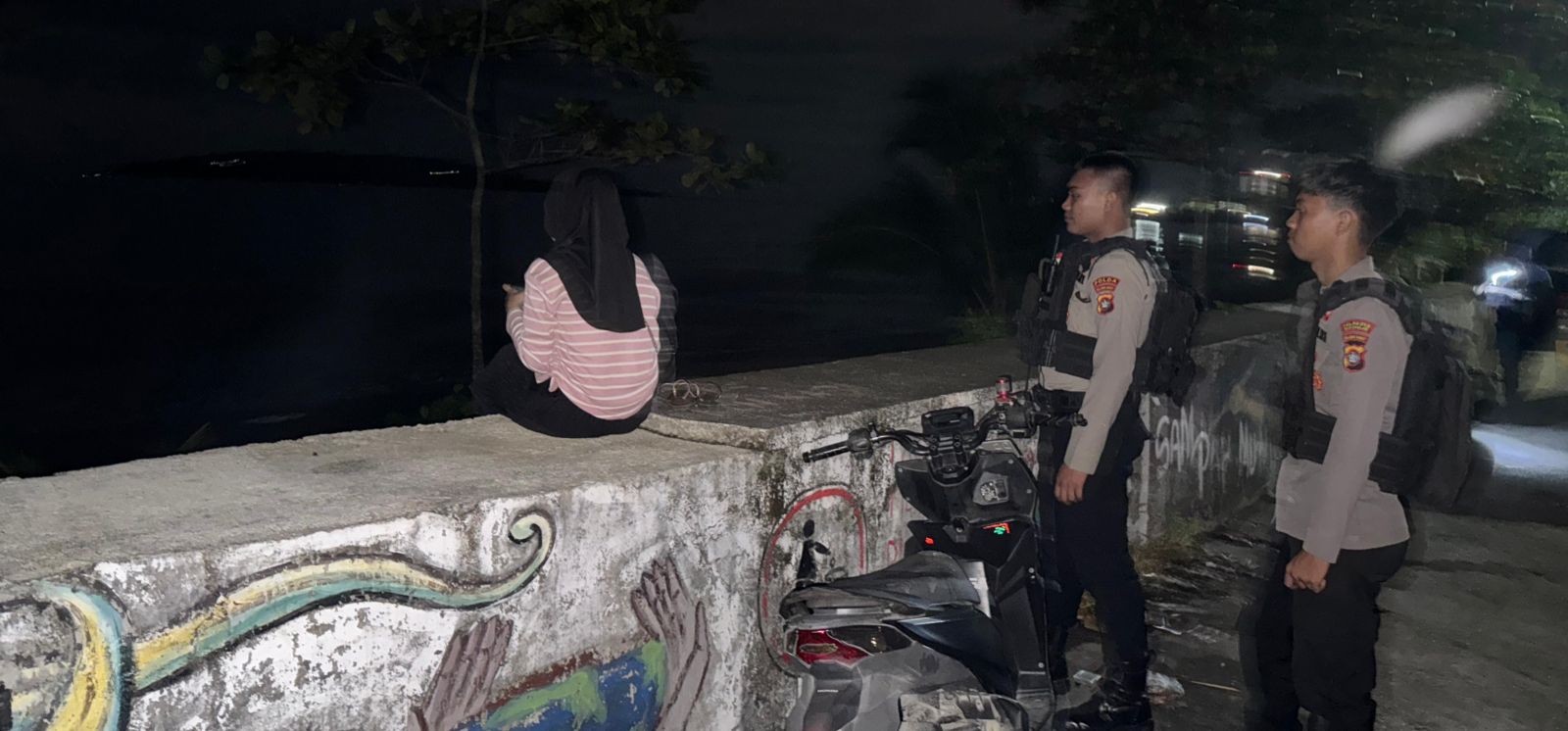 Saat melaksanakan patroli malam hari, petugas mendapati seorang perempuan muda dan cantik yang tengah duduk seorang diri di tanggul pantai Arteri, Selasa (14/1/2025) sekitar pukul 03.00 WITA.