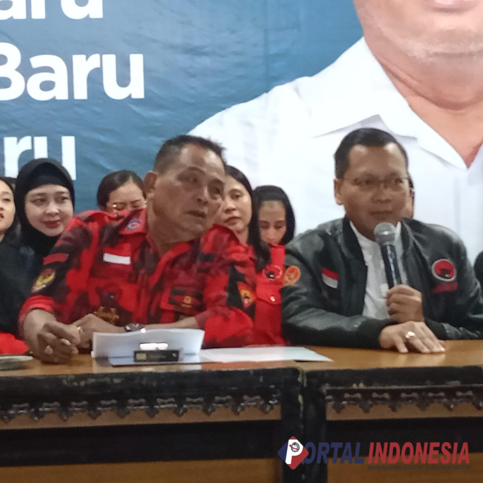 Dari kiri kekanan : Ketua koalisi partai pendukung Hardo-Danang, Kuswanto dan sekretaris DPC PDIP Sleman Gustan Ganda (Brd/Portal Indonesia)