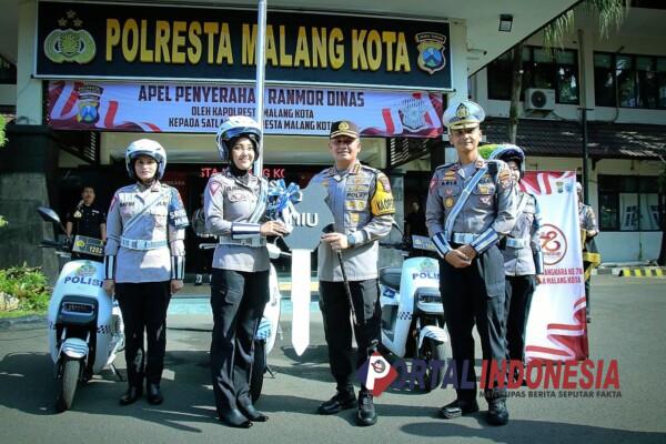 Kapolresta Malang Kota Kombes. Pol. Budi Hermanto, S.I.K, M.Si saat serahkan kendaraan operasional yang akan digunakan Srikandi Makota untuk berpatroli