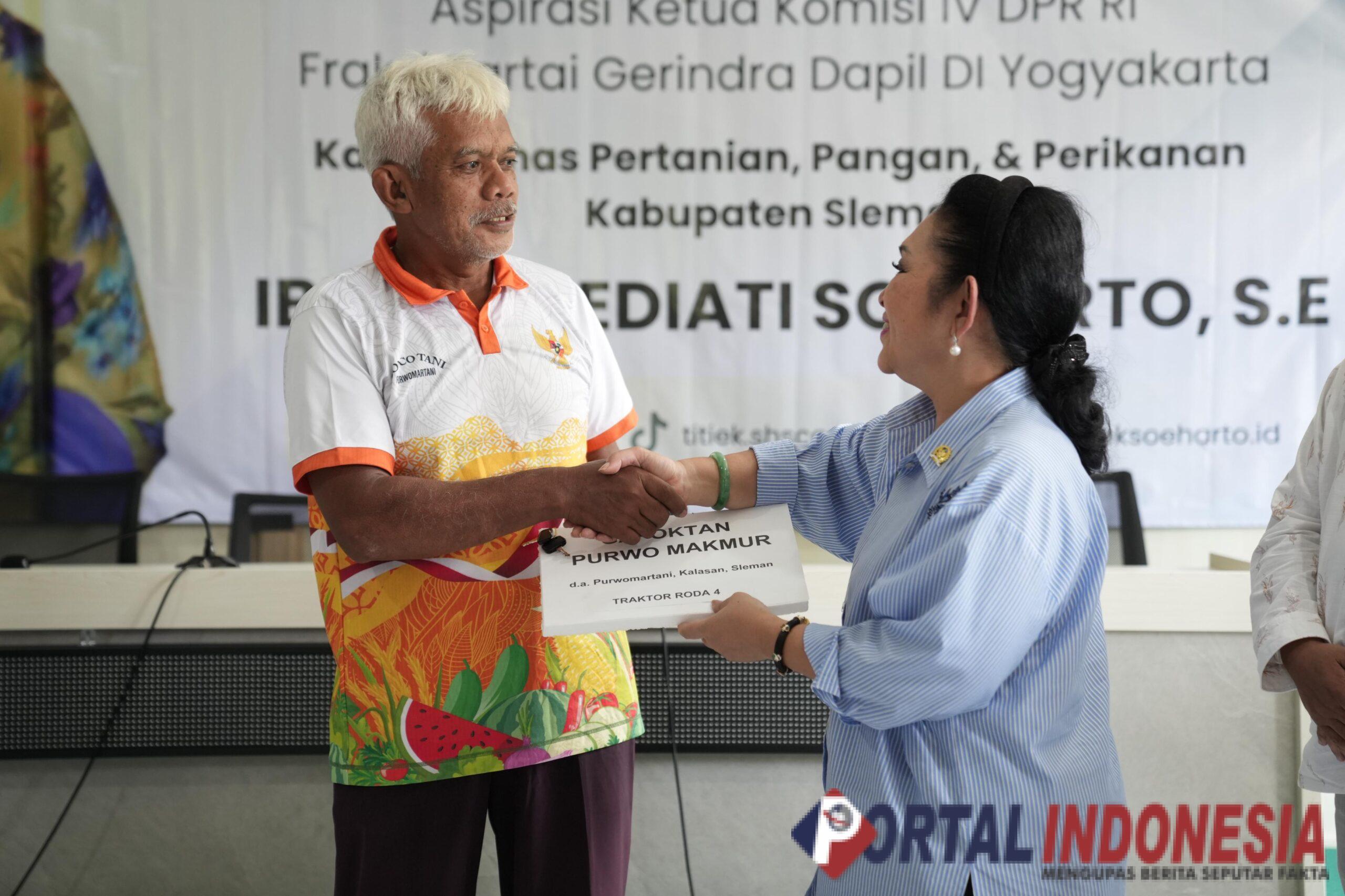 Ketua Komisi IV DPR RI, Titiek Soeharto serahkan bantuan alsintan kepada salah satu perwakilan Gapoktan di Sleman (Portal Indonesia/Brd)