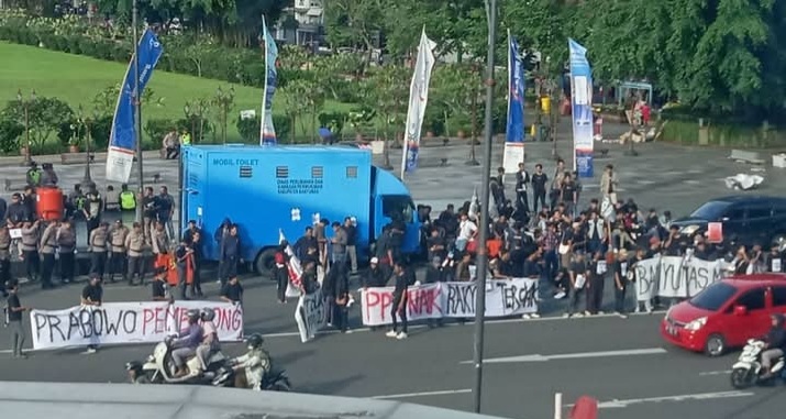 Dalam aksinya tersebut, massa menyuarakan aspirasinya lewat lembaran spanduk dengan berbagai kalimat. Diantaranya ‘pajak mencekik, aparat keparat pembunuh rakyat, PPN naik rakyat tercekik, Prabowo Pembohong’.
