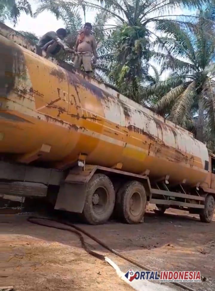 Didalam perkebunan tersebut terpantau oleh tim awak media, mobil tronton tangki lalu lalang keluar masuk dan sedang mengantri mengisi minyak jenis solar kedalam tangki yang bermuatan 200 drum ditempat penyulingan minyak ilegal (ilegal refinery).