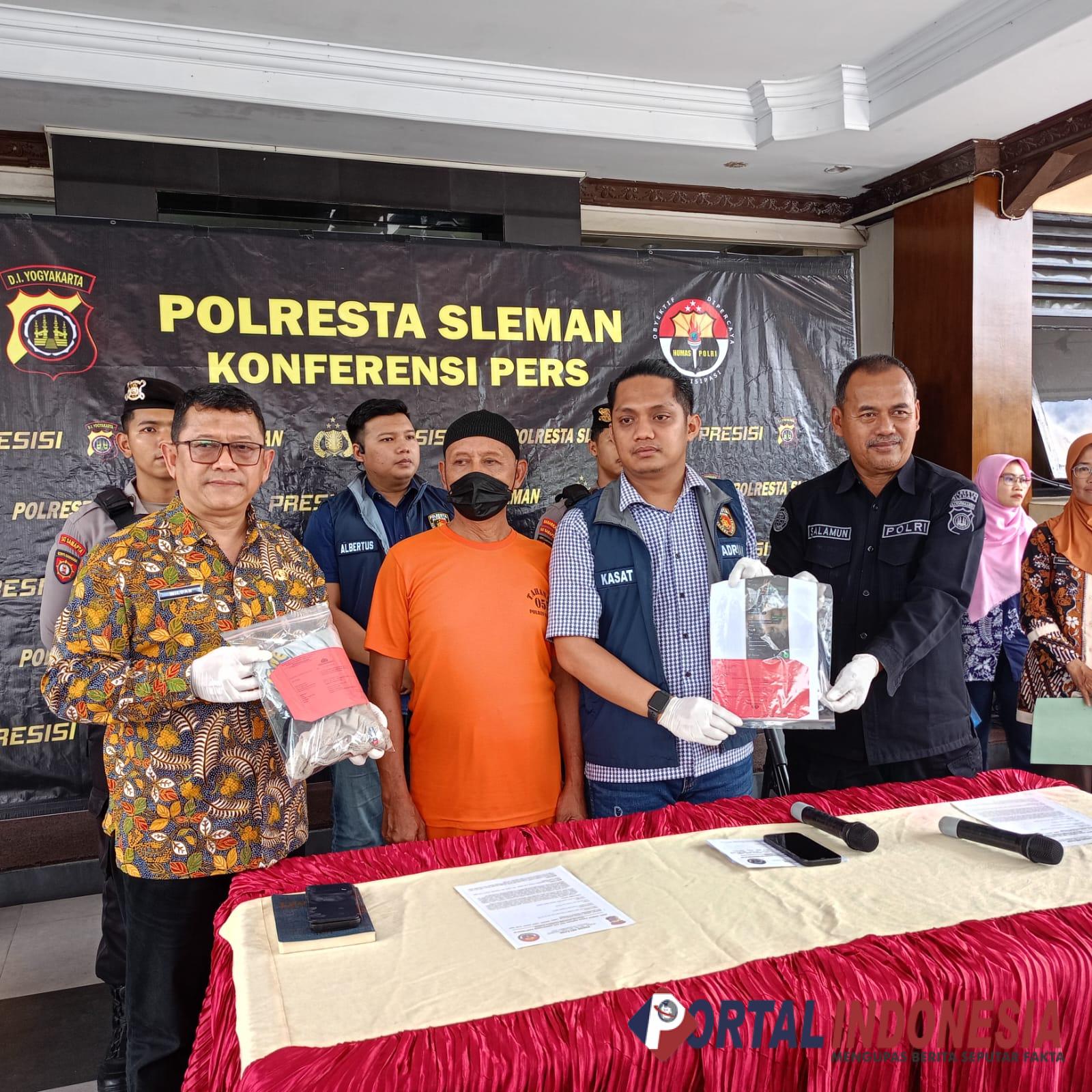 Dari kiri ke kanan: Kepala Dinas P3AP2KB Kabupaten Sleman Wildan Solichin, tersangka dan Kasat Reskrim Polresta Sleman (Brd/Portal Indonesia)