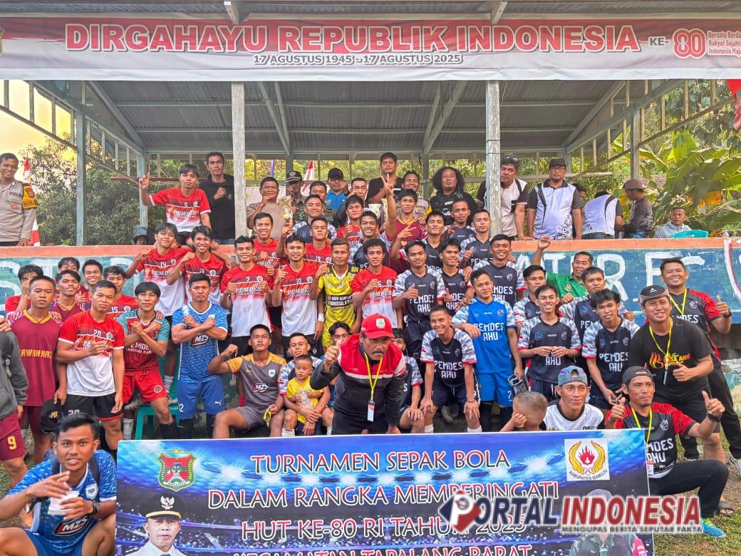 MAMUJU – Rangkaian turnamen dalam rangka peringatan HUT ke-80 RI di Kecamatan Tapalang Barat resmi ditutup pada 24 Agustus 2025. Kegiatan yang berlangsung sejak 7 Agustus itu berjalan aman dan lancar.