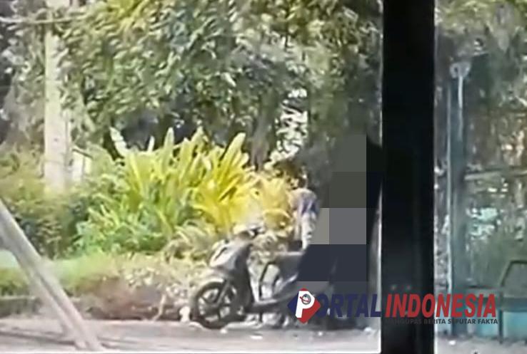 Video berdurasi 19 detik yang beredar luas memperlihatkan seorang perempuan berjilbab hitam duduk di pangkuan pasangannya di siang bolong. Aksi tidak pantas ini dilakukan di atas bangku besi, di tempat terbuka, tanpa memedulikan lingkungan sekitar.
