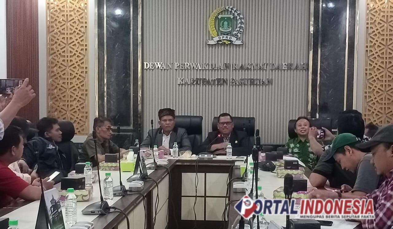 Ketua DPRD Kabupaten Pasuruan, Samsul Hidayat dengan didampingi yang bersangkutan Rudi Hartono dan juga Sekretaris Dewan saat press release