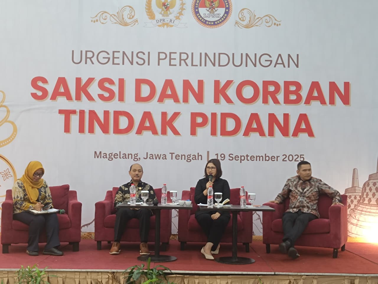 MAGELANG – Anggota Komisi XIII DPR RI Vita Ervina mendorong semakin terbukanya akses keadilan bagi rakyat Indonesia melalui penguatan peran Lembaga Perlindungan Saksi dan Korban (LPSK). Penegasan itu disampaikan dalam forum sosialisasi bertajuk “Urgensi Perlindungan Saksi Korban Tindak Pidana” di Kabupaten Magelang, Jumat (19/9/2025).
