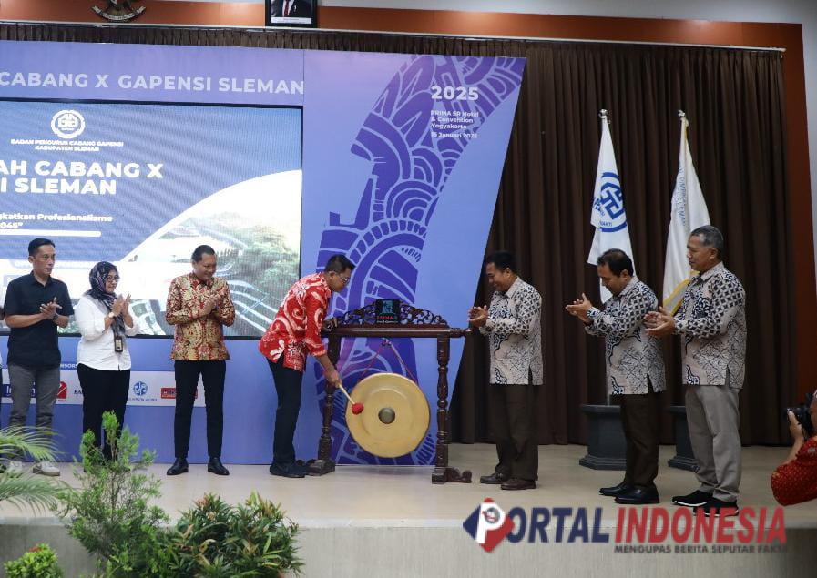 Wabup Sleman Danang Maharsa pukul gong tanda pembukaan Muscab Gapensi Sleman (Portal Indonesia/Brd)