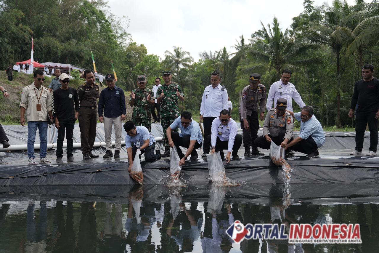 Selain menanam kelapa, kegiatan tersebut juga diisi dengan penebaran benih ikan nila, yang dilakukan bersama Forkopimda dan Bapas di kawasan Hargobinangun Agro Park. (Brd)