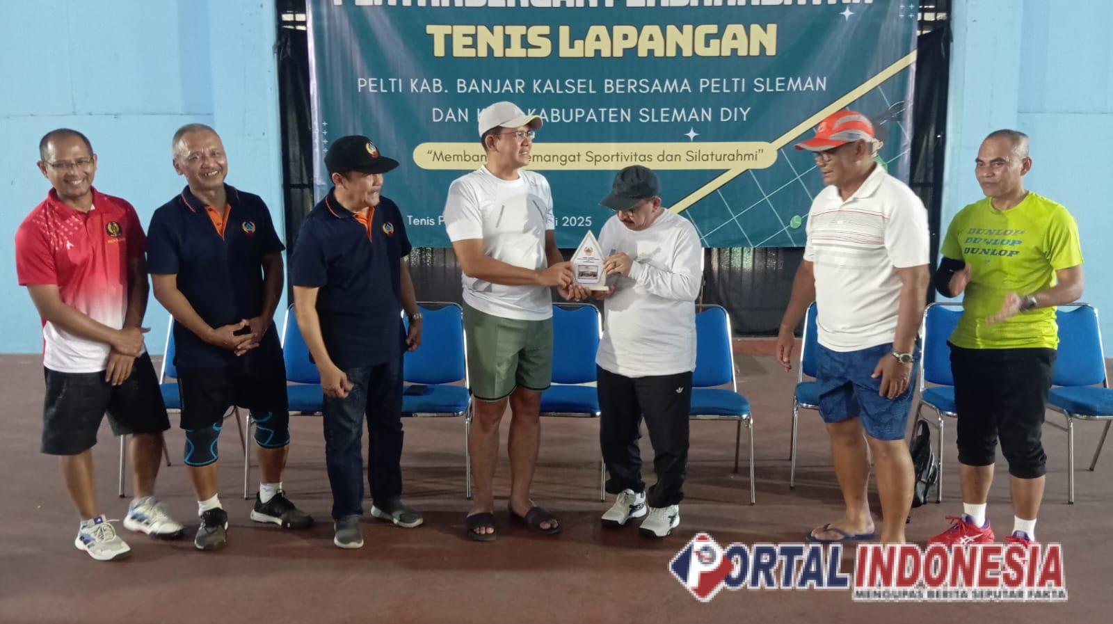 SLEMAN – Sejumlah pengurus Persatuan Tenis Seluruh Indonesia (PELTI) Kabupaten Banjar Provinsi Kalimantan Selatan berkunjung ke Sleman, DIY untuk melakukan pertandingan persahabatan olahraga tenis lapangan dengan para pengurus PelTI Sleman dan Pengurus Komite Olahraga Nasional Indonesia (KONI) Kabupaten Sleman. Pertandingan persahabatan dilakukan di lapangan tenis Pemda Sleman, Sabtu (19/7/2025).