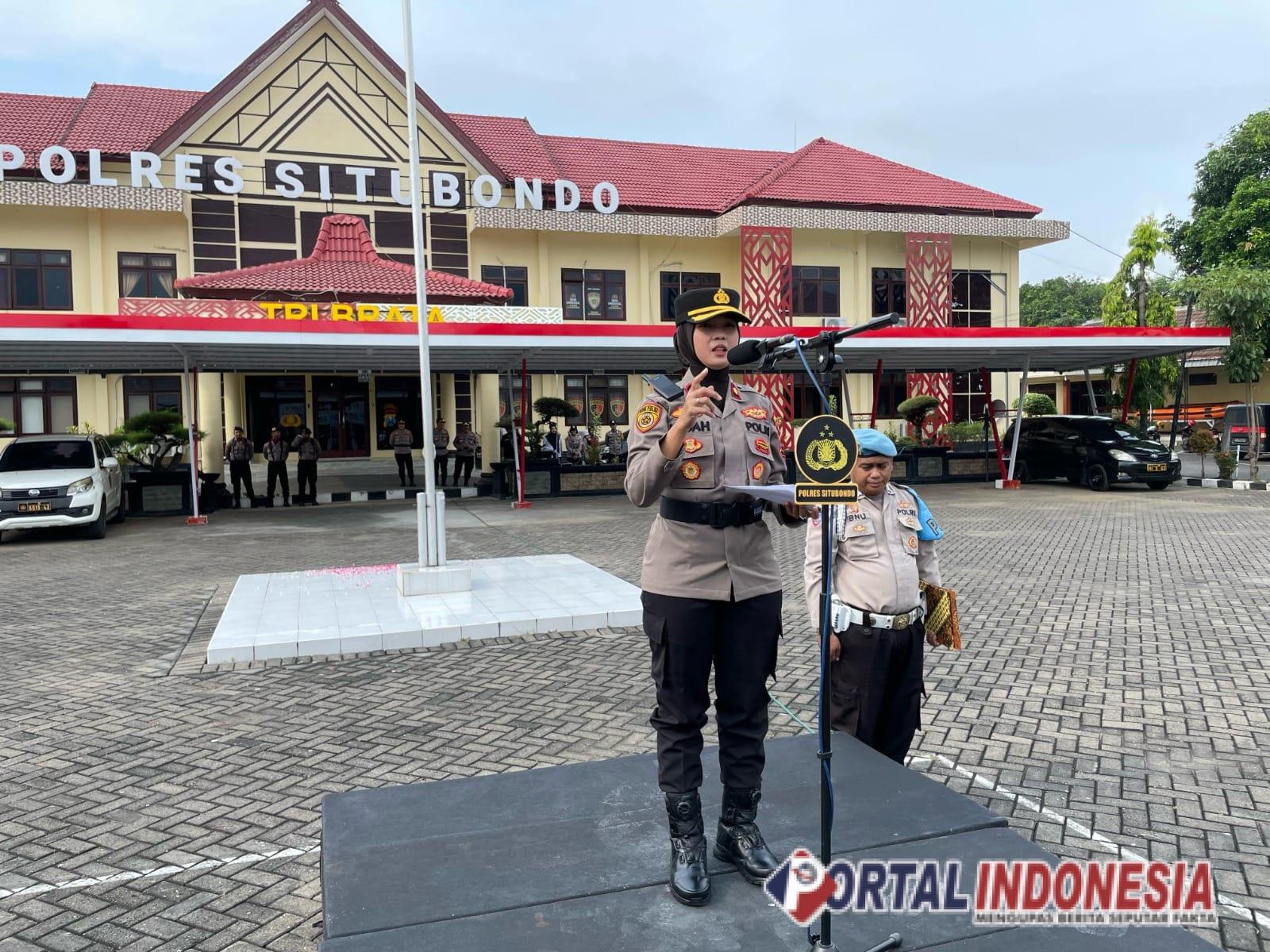 Upacara yang berlangsung khidmat ini dipimpin langsung oleh Wakapolres Situbondo, Kompol Indah Citra Fitriani, S.I.K., M.Si., dan diikuti oleh seluruh jajaran, mulai dari Pejabat Utama, Kapolsek, Perwira, Bintara hingga ASN Polri.
