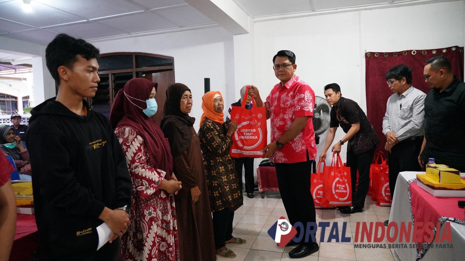 Wabup Sleman Danang Maharsa (baju merah) serahkan bantuan kepada Sahabudin (Brd/Portal Indonesia)