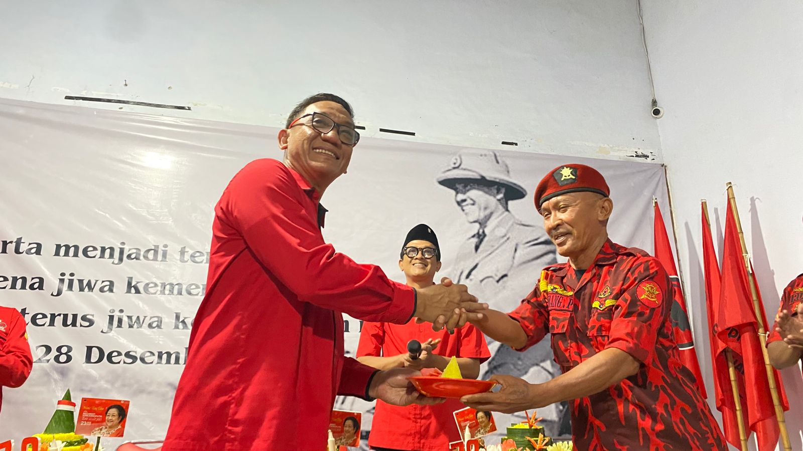Doa bersama dan syukuran potong tumpeng di Kantor DPC PDI-P dihadiri Wakil Walikota Yogyakarta terpilih Wawan Harmawan, Satgas Andika Wiratama PDI-P Yogyakarta dan pengurus anak cabang.
