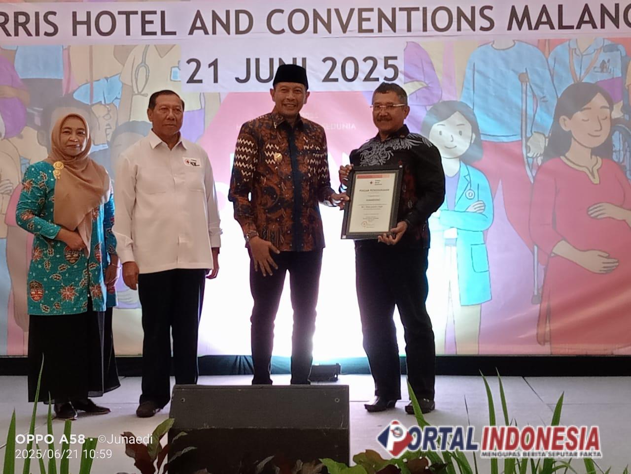 KOTA MALAN – Sebanyak 165 pendonor darah yang telah mendonorkan darahnya sebanyak 50 hingga 75 kali, menerima piagam penghargaan dari Palang Merah Indonesia (PMI) Kota Malang, Sabtu (21/06/2025).