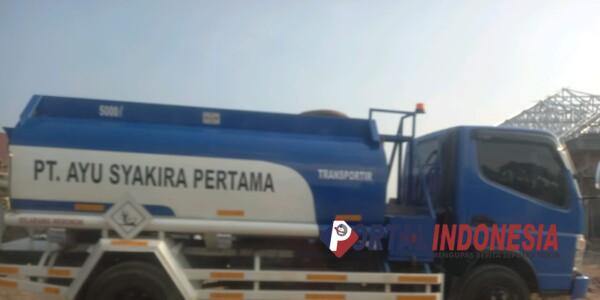 Mobil tangki PT Ayu Syakira Pertama di depan gudang tersebut