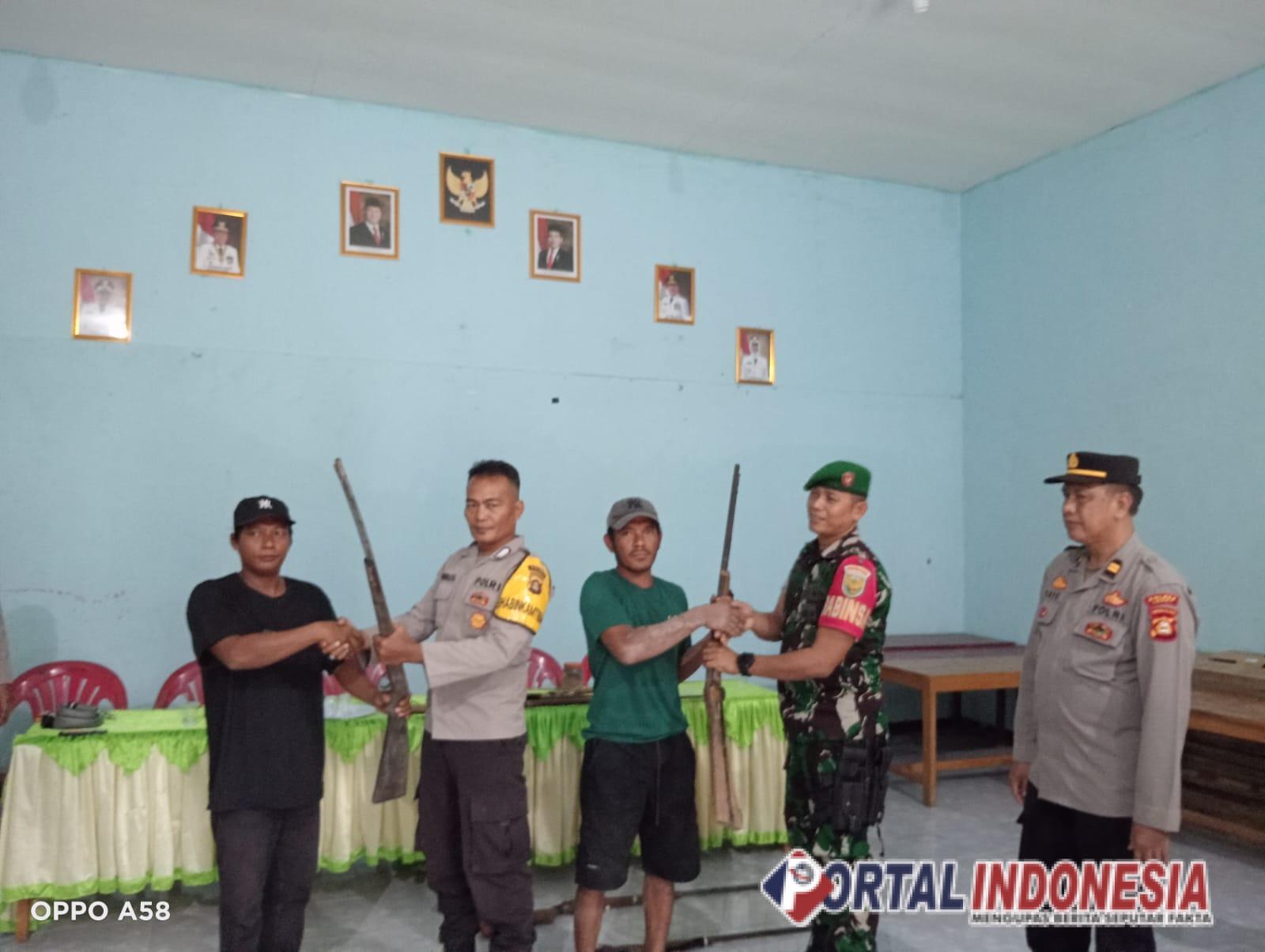 Sebelum penyerahan, warga dan kepala desa menandatangani surat penyerahan serta pernyataan perjanjian tidak akan memiliki atau menyimpan senpi rakitan lagi.
