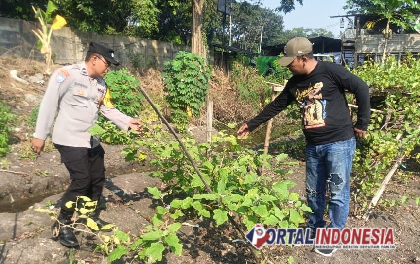 SIDOARJO — Guna mendukung program ketahanan pangan Polresta Sidoarjo Polda Jawa Timur dan arahan Kapolresta Sidoarjo Kombes Pol Christian Tobing, Bhabinkamtibmas Ketegan Polsek Taman, Aipda Ugi P, melaksanakan kegiatan pengecekan langsung terhadap lahan penanaman terong milik warga di Desa Ketegan, Kecamatan Taman, Kabupaten Sidoarjo, pada Minggu (8/6/2025).